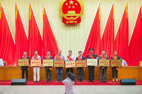 我司工會(huì)主席夏建敏(左二)代表企業(yè)領(lǐng)取獎(jiǎng)牌