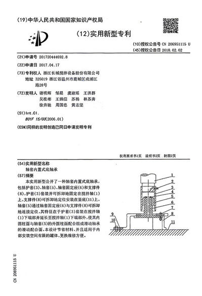熱烈祝賀我司“軸套內(nèi)置式底軸承”獲國家實用新型專利